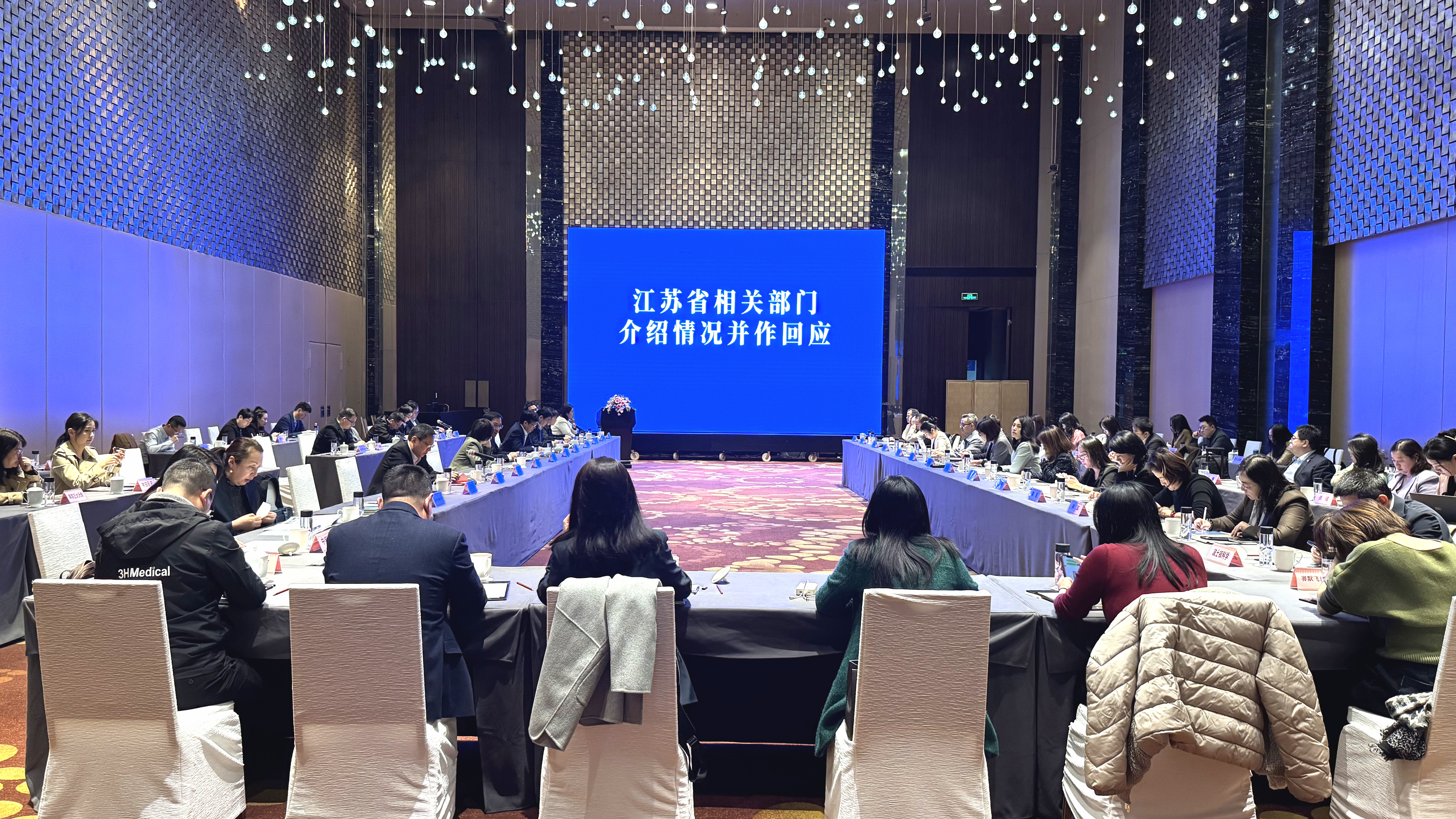 本次座谈会分为领导致辞、外资机构和企业代表发言、省级部门情况回应、江苏企业代表发言等环节。中国贸促会贸易推广交流中心主任闫荟、江苏省医保局副局长陈亮等先后致辞。江苏省商务厅、卫生健康委、医保局、药监局相关处室负责人随后针对企业关切问题进行了细致回应,为企业发展答疑解惑、指明方向。