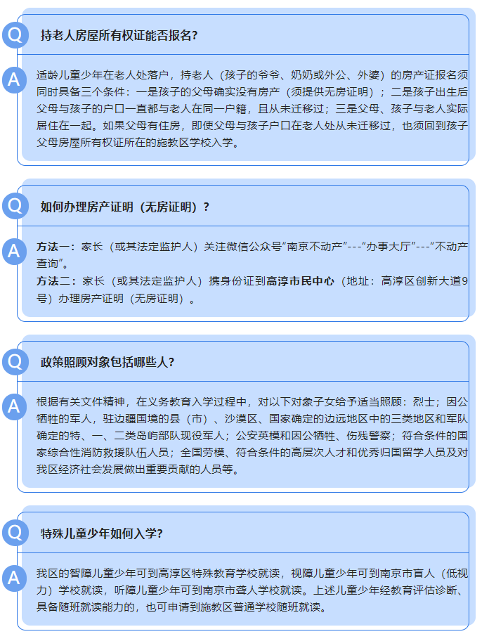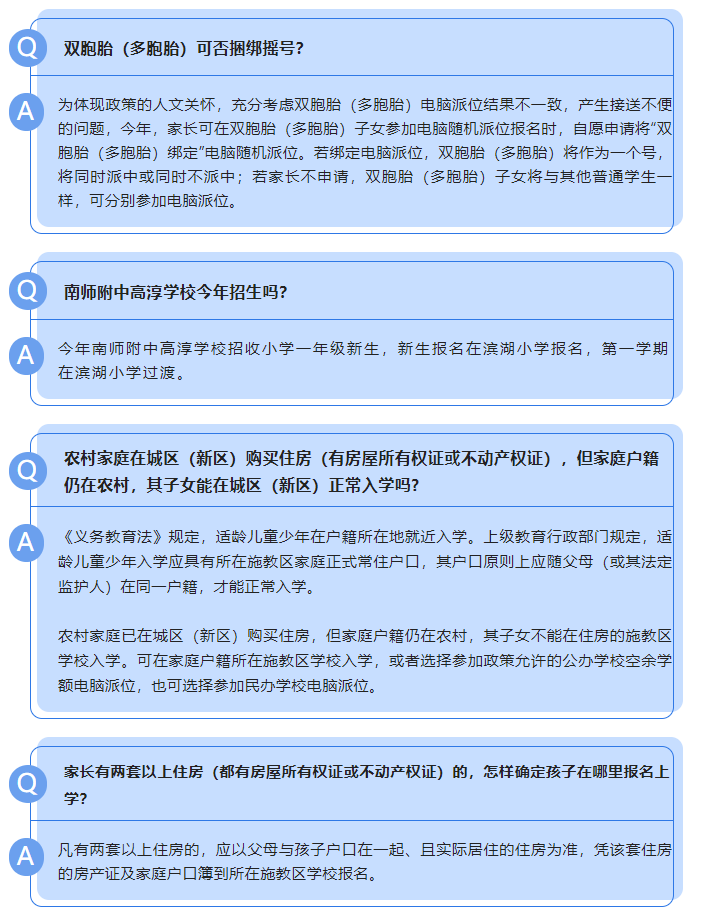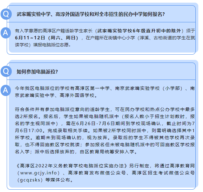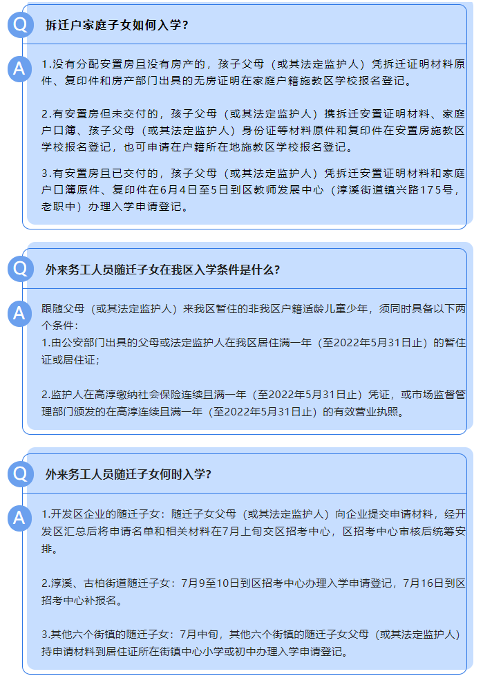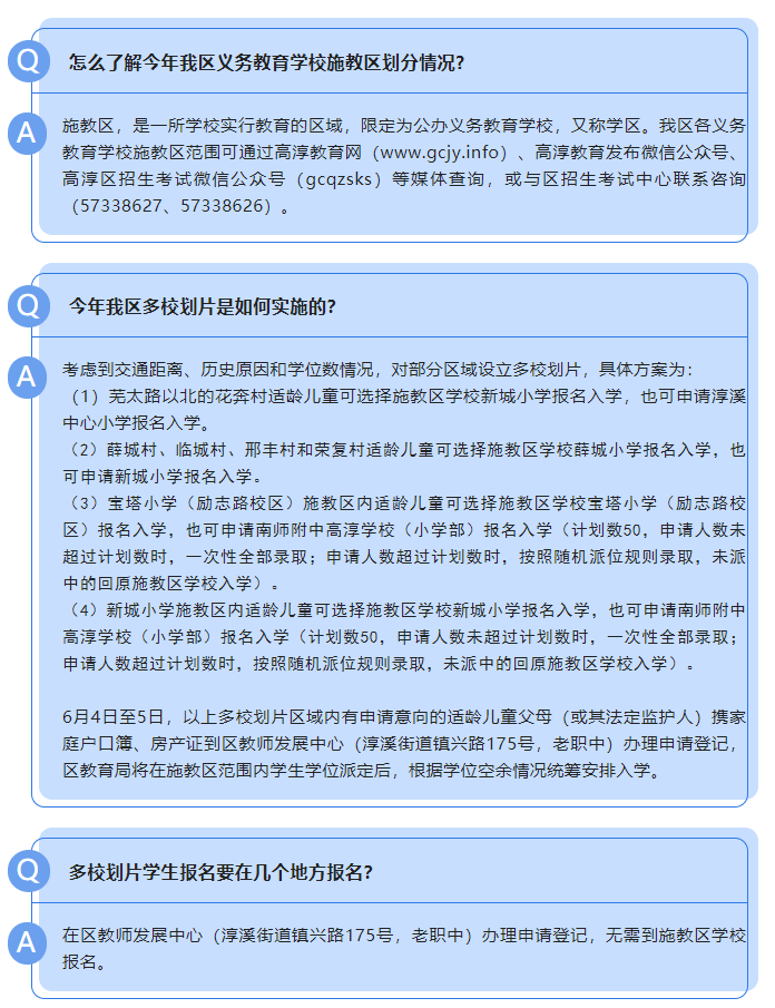 信息名称: | 高淳区2022年义务教育阶段学校招生入学工作热点问答(图解) | ||