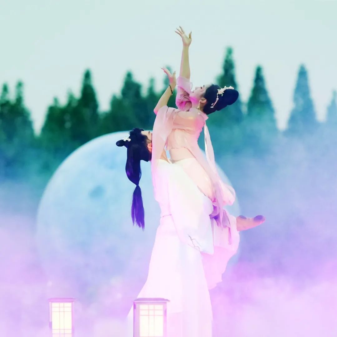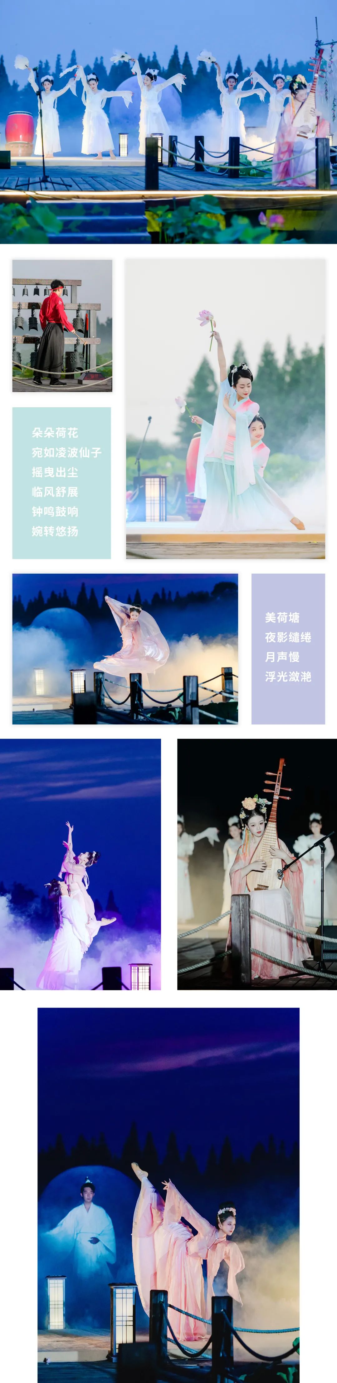 现场水天一色、裙袂飘摇,荷叶潋潋,荷塘如诗如画,观众阵阵掌声随波轻荡。有人感叹,这才是传统文化最美好的表达啊。