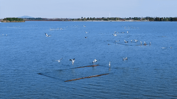 远自西伯利亚的候鸟如约而至,这群翩然的身影,为这片水域注入了灵动与诗意。