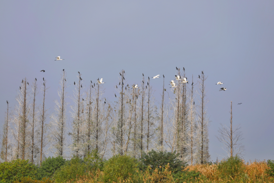 东方白鹳、豆雁、白琵鹭……百余种珍稀鸟类翩然而至。它们的身影,是工笔细描的精粹,亦是写意挥洒的诗行,共同在碧水长天间绘就一幅灵动的生态画卷。