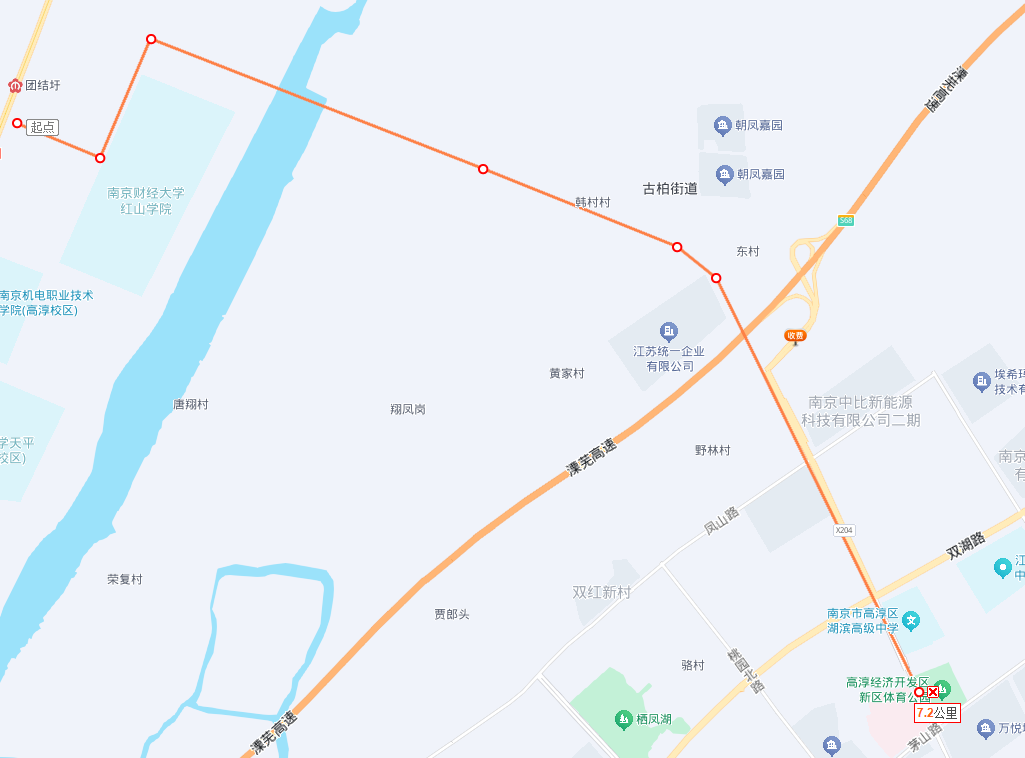 二、停靠站点:团结圩地铁站南—红山学院—古檀大道(凤袁)—统一集团—凤山路北—湖滨中学—人民医院
