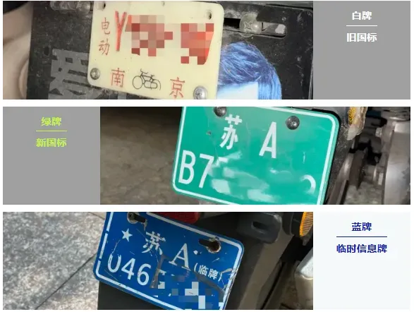 再带你熟悉一下,三种颜色牌照的区别。当前,南京市路面上行驶的本地电动两轮车牌照,“白、绿、蓝”分别对应“旧国标、新国标、临时信息牌”三类车辆登记信息。