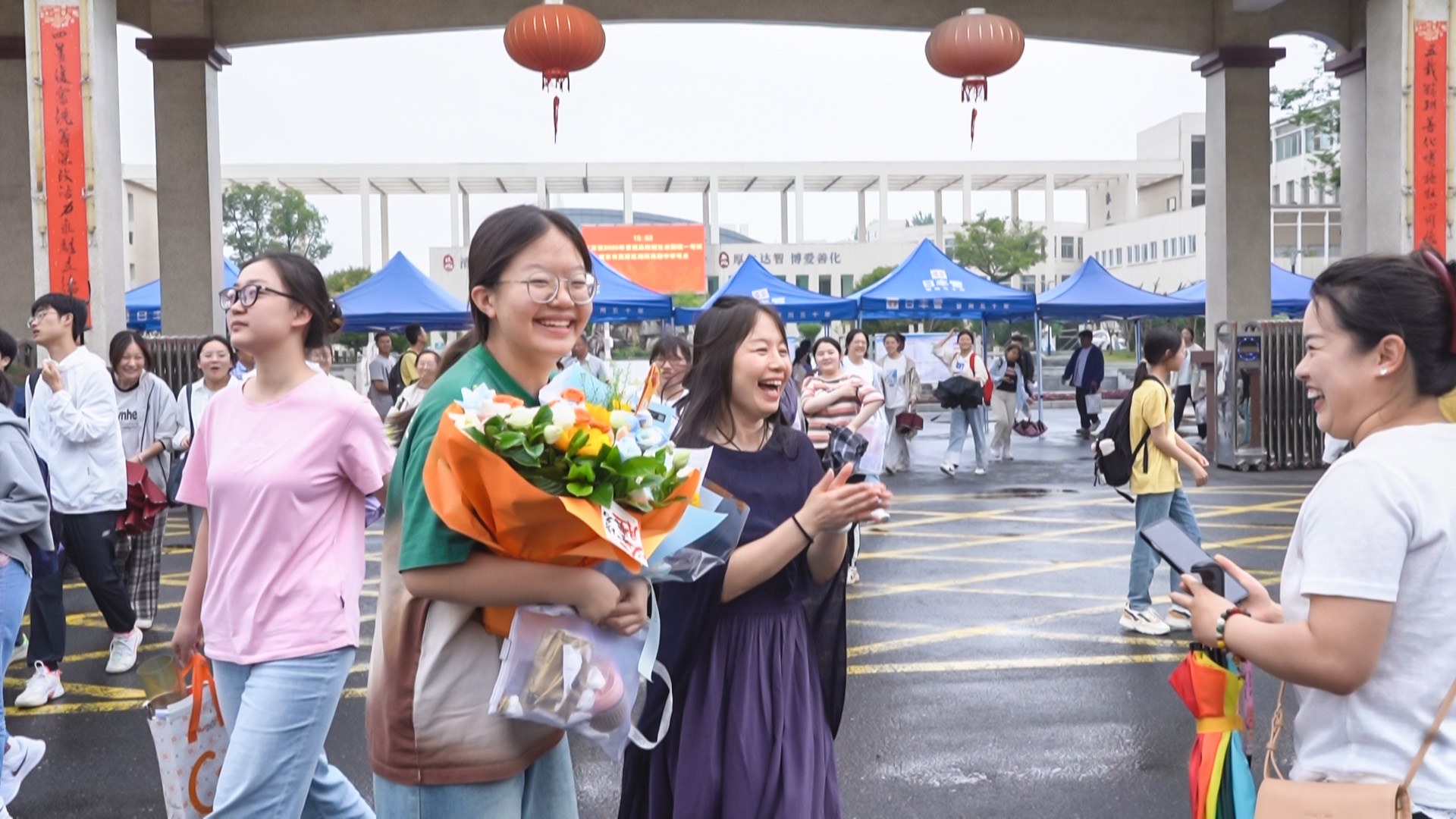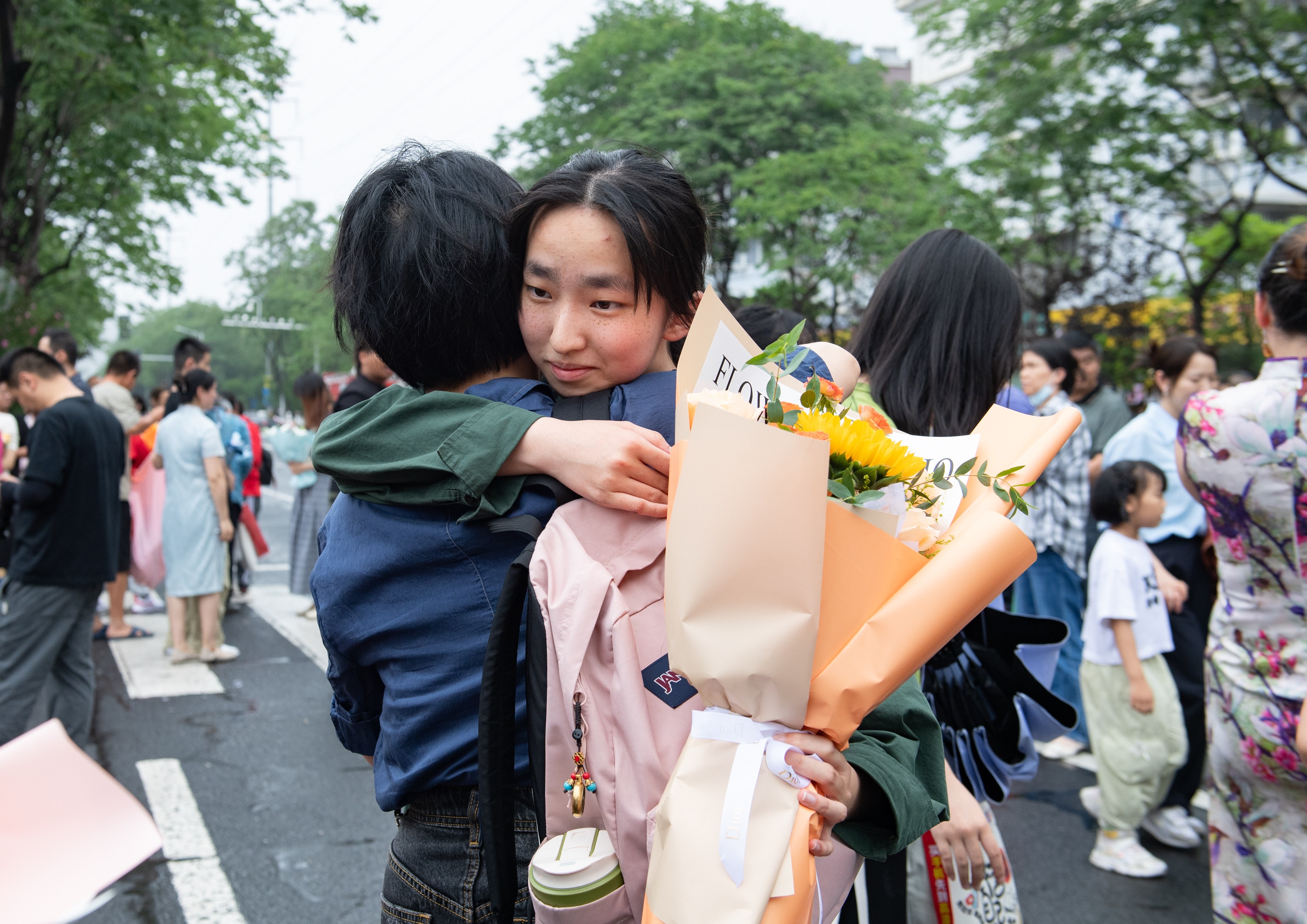 当考生陆续走出考场,家长们纷纷举起手机定格珍贵瞬间,将鲜花、拥抱和祝福送给考生们,用最温暖的方式为这场人生重要的考试画上圆满句号。