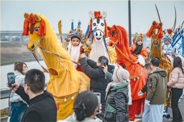 日,中断十余年的阳江镇丹湖村孙家宕自然村跑马灯民俗活动,在村戏台广场热闹重启。现场人声鼎沸,锣鼓铿锵,瞬间拉满新春的喜庆氛围。据悉,本次活动将持续至