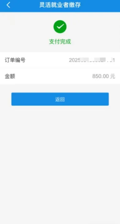 3、选择微信支付,点击去支付,若下单成功则跳转到微信支付页面,支付成功后跳转到支付完成页面。若提示下单失败或未支付,需要在灵活就业者缴存明细中撤销登记,重新操作缴存业务。